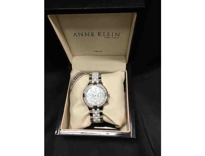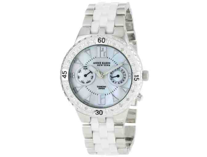 Anne Klein New York Womens's Diamond Accented White Ceramic and Stainless Steel Watch