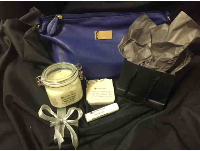 -Remi & Reed Tote with matching inside clutch, filled with Live My Skin products (Lavendar Mint Sugar Scrub, Olive My Lips and Soap)