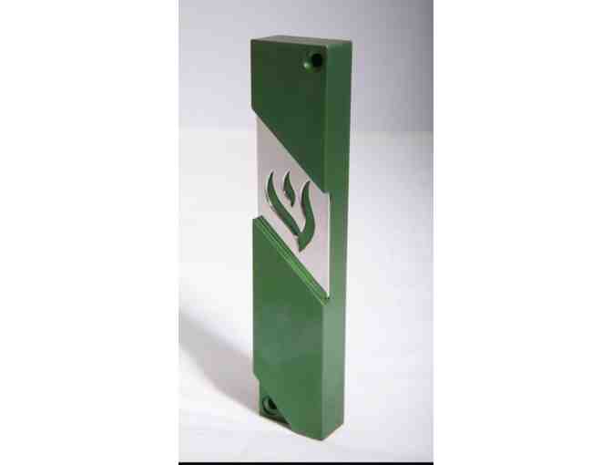 Silver and Anodized Aluminum Mezuzah in a Brushed Metallic Emerald Green