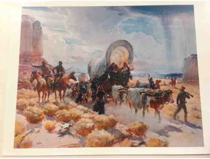 The winning bidder will receive a print of James M Sessions: Along the Oregon Trail. The pring measures 8 1/2" x 11"