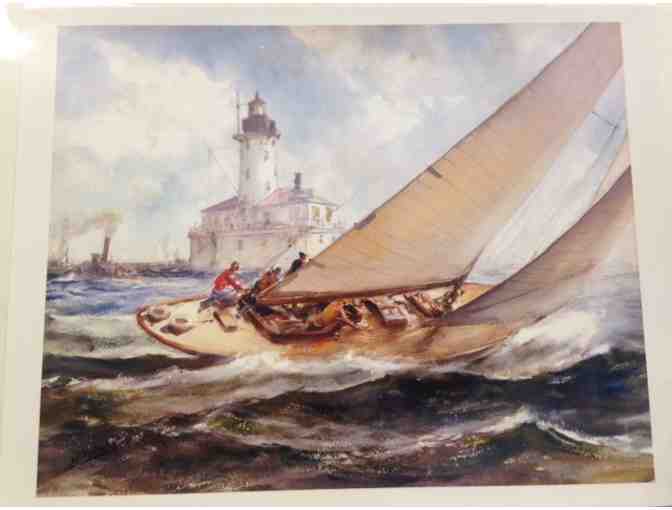The winning bidder will receive a print of James Milton Sessions: Rounding the Lighthouse. The print measures 8 1/2" x 11"