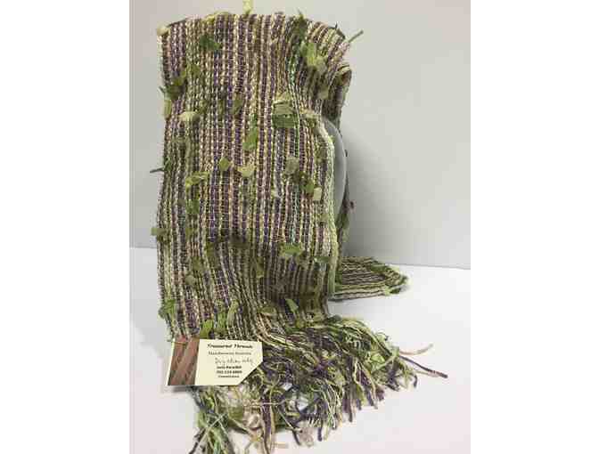 The winner of this package will receive one green handwoven scarf by Treasured Threads (pictured).