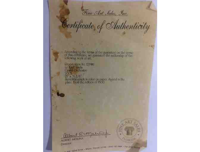 The winner of this package will receive a limited edition serigraph of "Grand Orchestra," signed and numbered in pencil by Linda Le Kinff.