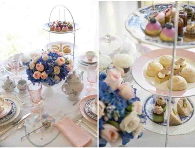 Up To Twelve Guests Rental dishes include tea pots, teacups, plates, flatware, napkins and serving pieces. Complete place settings for two tables with six guests each.