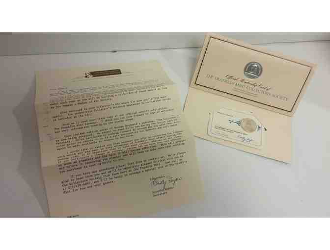 A 1973 Franklin Mint Collector's Kit, including official Franklin Mint membership card with sterling silver member coin and introductory letter.