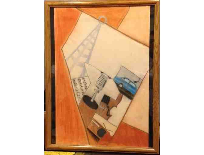 The winner of this package will receive this untitled, framed pastel painting by Joe Malunda.