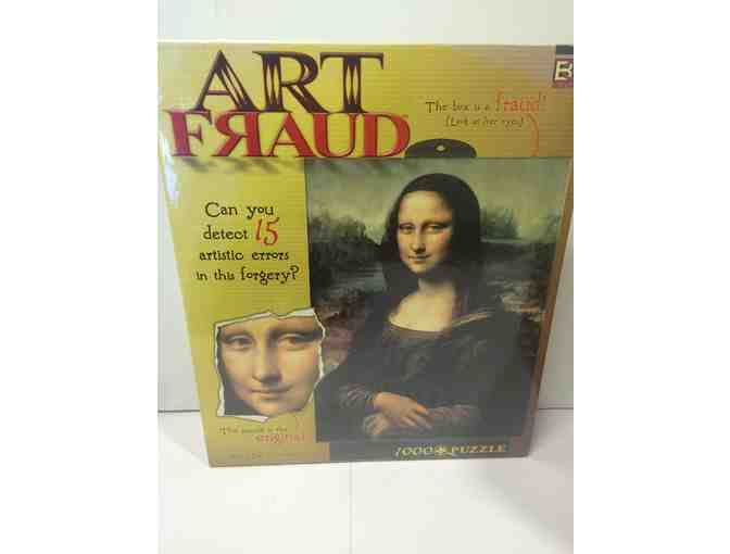 The winner of this package will receive this Art Fraud Mona Lisa Jigsaw Puzzle, donated by Linda Guiffreda-Baker.