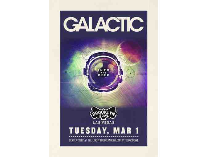 The winner of this package will receive a pair of General Admission tickets to see Galactic at Brooklyn Bowl Las Vegas on Tuesday March 1, 2016 at 9pm.