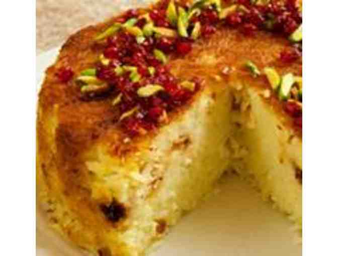 The dishes of Iran are often time-consuming, slow-cooked affairs. Rice dishes are among the true specialties of the region. There are two primary preparations for rice in Iran: chelow and polow. Preparing both the chelow (white rice) and polow (a pilaf-style dish) is a long, complicated process. The rice is first soaked, then boiled and finally steamed. To make chelow koresh, a household favorite, the rice is then cooked until a golden crust forms at the bottom of the dish. Chelow is a common accompaniment to meat or poultry stews. A polow is generally flavoured with vegetables, herbs and nuts. For example, shireen polow, considered “The King of Persian Dishes”, is flavoured with saffron, orange peel, dried fruit, carrot, pistachios and almonds and then coated in caramelized sugar and served with saffron rice.