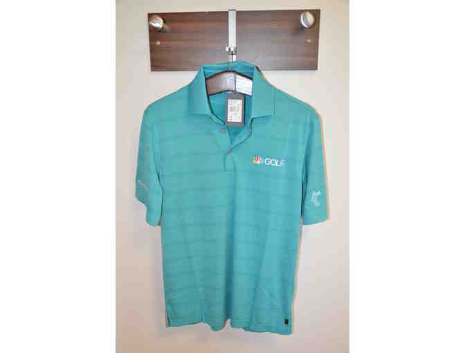 Blue Green Ashworth golf shirt EZ-TEC2 size small. Performance, Breathable, Moisture Wicking, Quick Dry. Golf Channel logo on chest.
