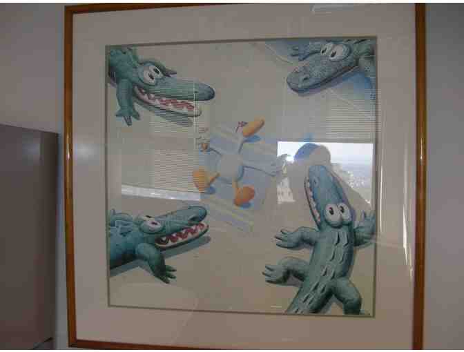 Whimsical Duck surrounded by Alligators Print - Artist Unknown