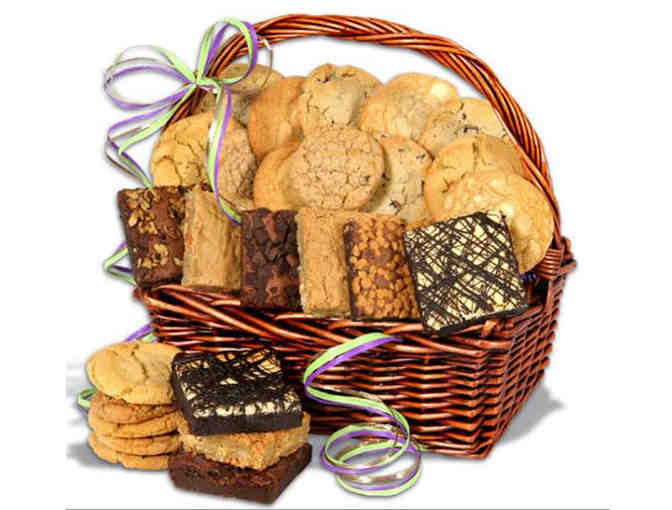 Basket is filled with brownies and irresistibly crunchy cookies, creating a sweet assortment that’s perfect for any occasion!