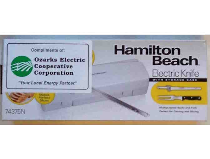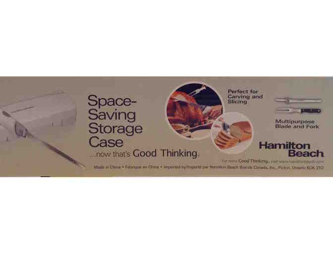 Electric knife includes a storage case and multipurpose blade and fork--perfect for carving and slicing.. Plus a bread guide makes slices easy-now that's good thinking!