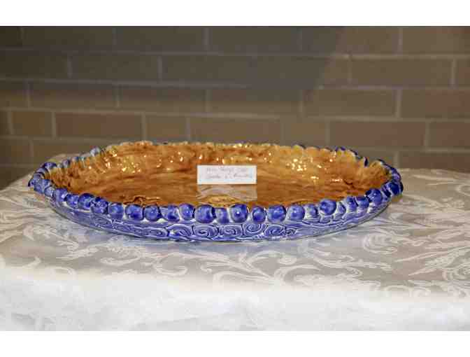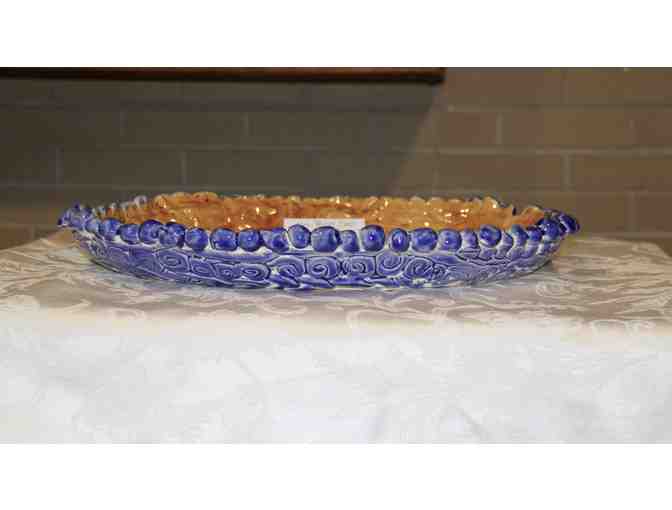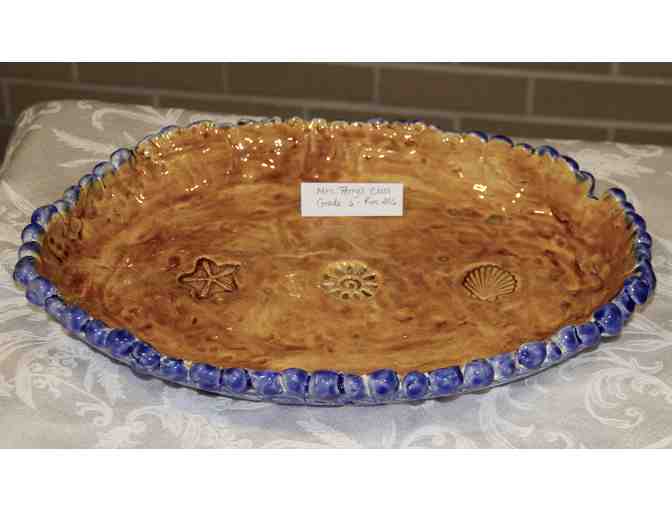 Platter is approximately 17" long, 10" wide and 2 1/2" tall. All artwork is on display at CIS in the glass case outside the entrance to the gym.