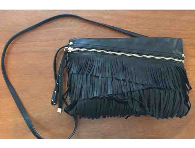 Stylish botkier Black Fringed Leather Handbag with shoulder strap... botkier quality....botkier style....botkier NEW YORK