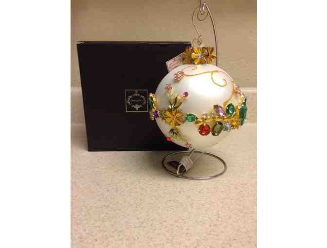 Mark Roberts Limited Edition Multi Jewel Banded Pearl White Ornament and Metal Stand