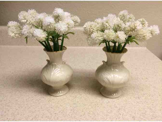 Elegant Vintage Ivory Lenox Porcelain Bud Flower Vase (Set of 2) with small Scallop Leaf Motif Gold Rim