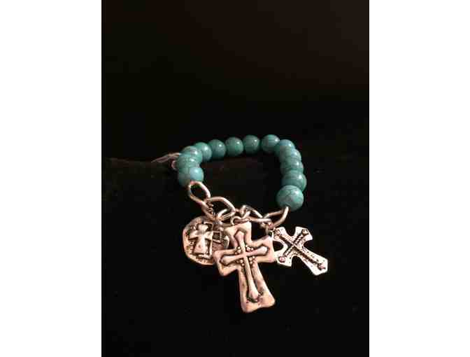 Turquoise & Silver Toned Beaded Bracelet with Cross Charms