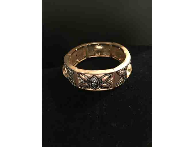 chico's Wynni Stretch Bracelet is very attractive featuring a"chic" style artisan styling with glass and metal beads.