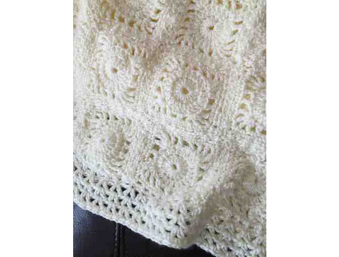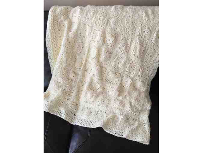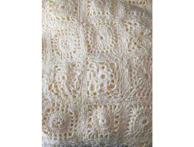 This beautiful cream colored Hand Crocheted Blanket (82" inches wide x 90" inches long) can be passed down from generation to generation. A family keepsake!