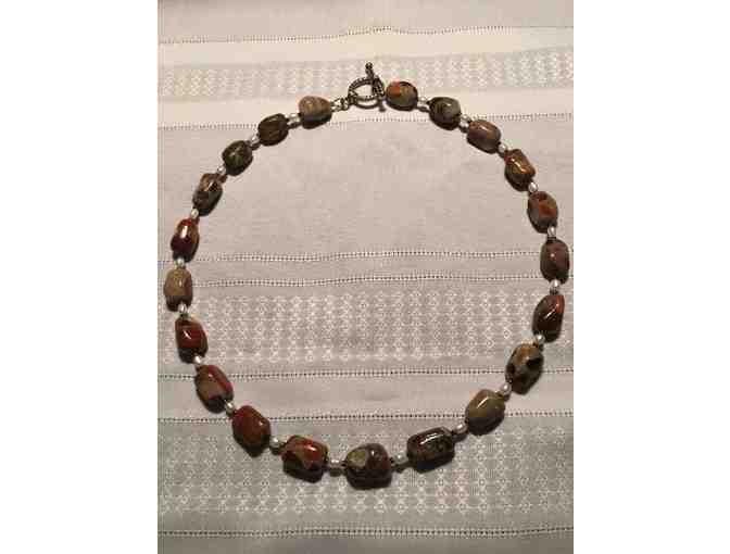 Rough Cut Polished Marble Stone Necklace with Seed Pearls & Silver Accents