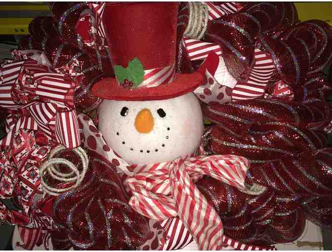Add a Whimsical touch to your door with this ....Snowman Christmas Wreath in Red and White with a touch of Green.