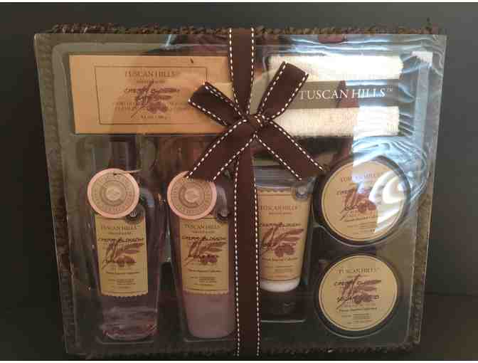 This beautifully packaged Tuscan Hills Cherry Blossom Deluxe Gift Set features an eight (8) piece Bath & Body Gift Set includes a Wicker Vanity Tray. The set includes: