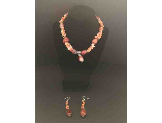 Stone Beads Necklace and Earring Set - Light & Dark Brown, White & Orange