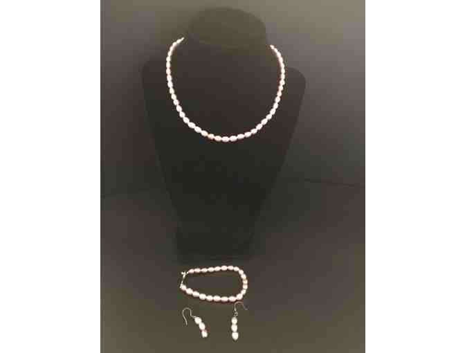 Pink and pretty.... Pink Seed Pearl Like Necklace, Earrings, & Bracelet Set