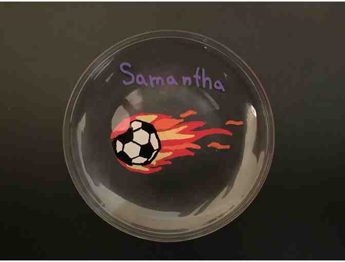 Designed and Decorated by Samantha Russell, this "Soccer is on Fire" ASO Athlete Plate is an Original!