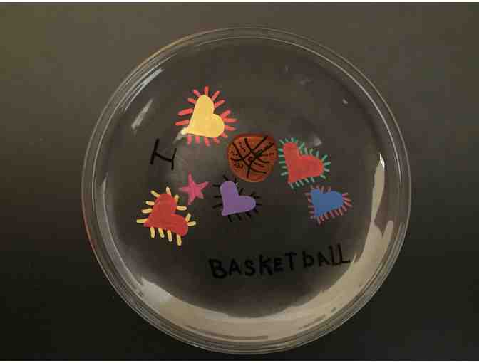 Designed and decorated by Courtney Osburn, this “I Love Basketball" ASO Athlete Plate is an Original!