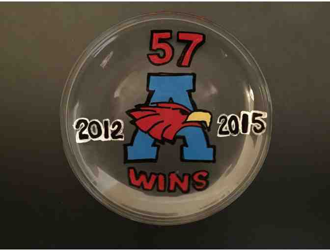 Designed and decorated by Adam Eck, this “A-Eagles 57 Wins in a Row" ASO Athlete Plate is an Original!