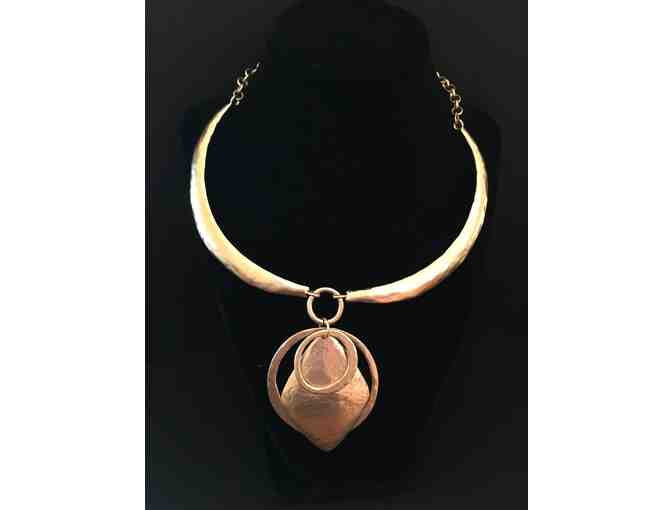 Crafted from hammered gold metal This bold necklace makes a statement that's worth its weight in "gold"!