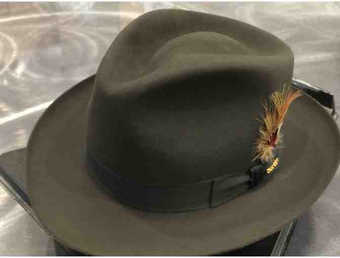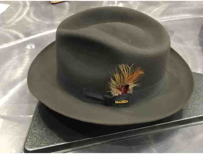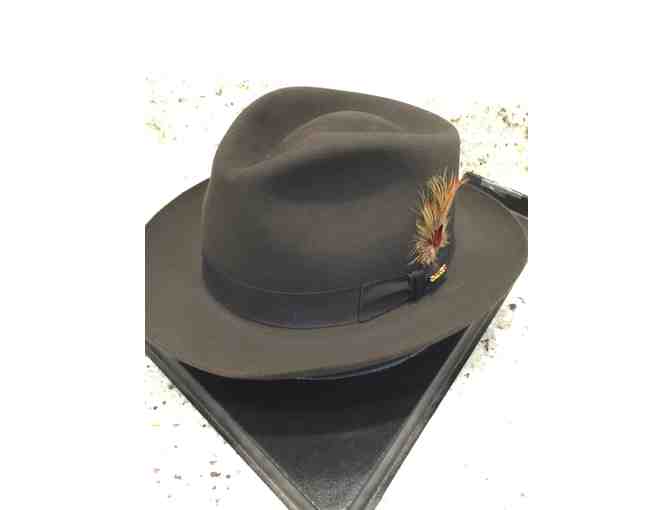 "A fedora is a felt hat with a wide brim and indented crown. It is typically creased lengthwise down the crown and "pinched" near the front on both sides.Fedoras can also be creased with teardrop crowns, diamond crowns, center dents, and others, and the positioning of pinches can vary. The typical crown height is 4.5 inches. The brim is usually approximately 2.5 inches (6.4 cm) wide, but may be wider,can be left "raw edged" (left as cut), finished with a sewn overwelt or underwelt, or bound with a trim-ribbon."