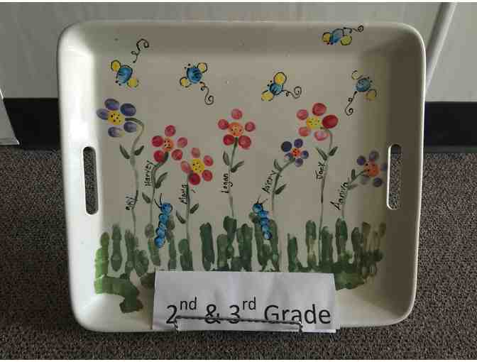 Please bid on this unique piece of art! The 2nd and 3rd Grade Hand Painted Fingerprint Ceramic Tray.