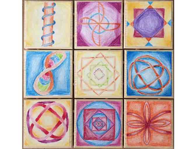 The 9 wooden squares made by Ms Dolly have been beautifully decorated with colored pencil form drawnings by grade 4 students.