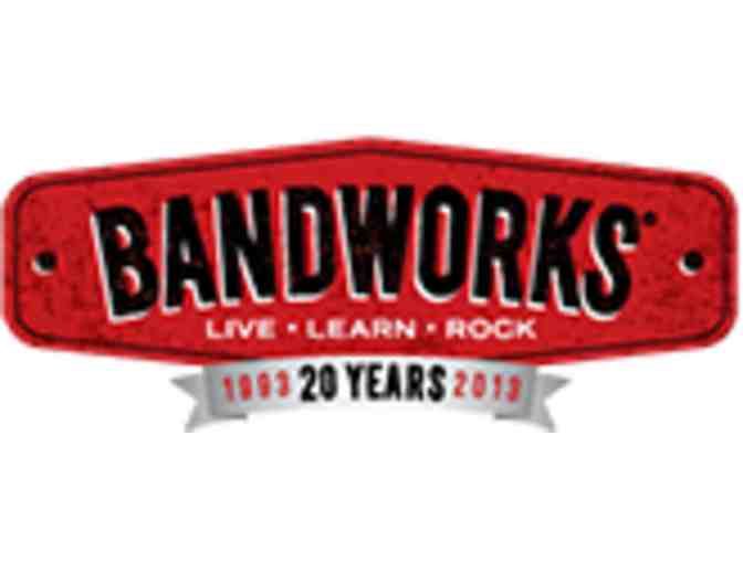 Musical Teamwork at BandWorks Summer Camp! For kids 8+, BandWorks award-winning Rock n Roll Camp is open to young beginners through advanced, older teen players. Top professional musician-instructors create a team environment while teaching kids the skills they need to play in a rock band! By the end of the week, students are rocking out in a live performance in the classroom. Locations in Oakland, San Rafael, San Carlos, and Los Altos. Certificate is good for a week of half day camp. For registration and more info about BandWorks Summer Camp, please contact us today at julie@bandworks.com, 510.THE.BAND (843.2263), or visit the BandWorks website: BandWorks Summer Camp