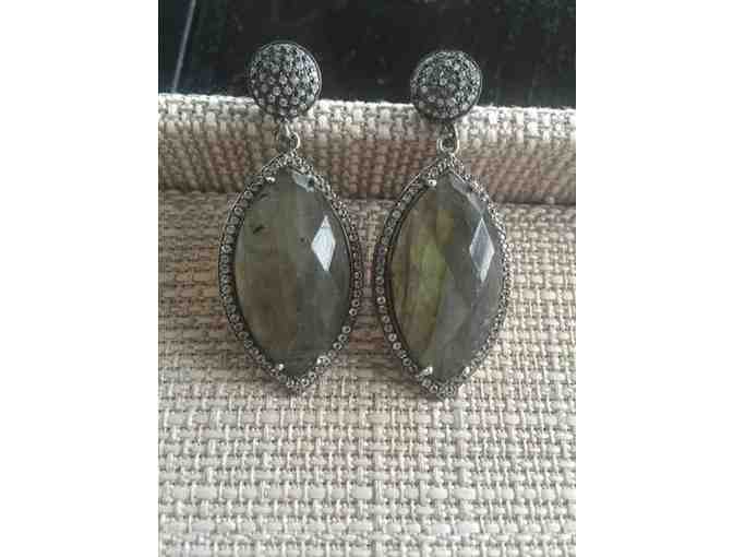 Labradorite and white topaz micro pave earrings set in oxidized sterling silver.