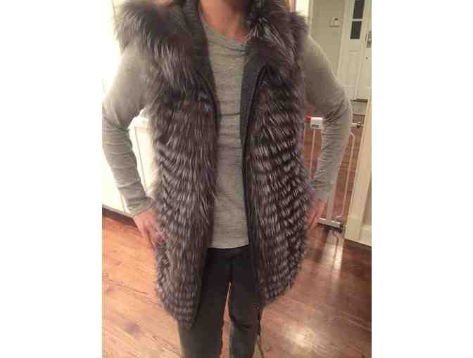 Dress in style with the silver fox/cashmere vest with hood by Albe Furs.