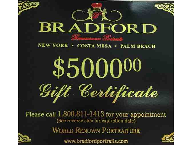 This $5,000 gift certificate to Bradford Renaissance Portraits is good for a family or individual sitting and one 16x20 wall portrait on canvas richly embellished by Bradford's renown artist.