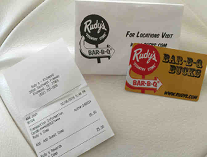 Rudy's Country Store is offering a $25 gift card to use at any participating locations. Subject to terms on the back of the card.