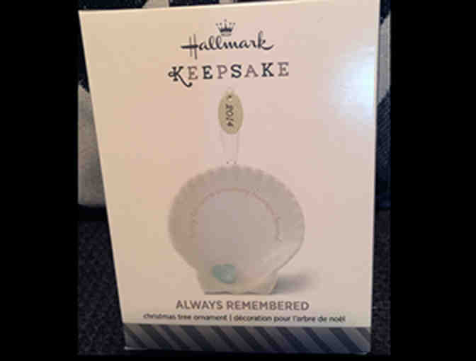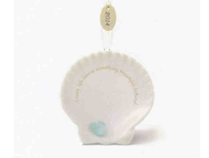 An ornament charm on the ribbon ornament hanger is dated "2014."