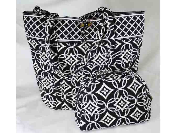 Large Tote & Zippered Cosmetics Bag in stylish, black and white Concerto pattern by Vera Bradley
