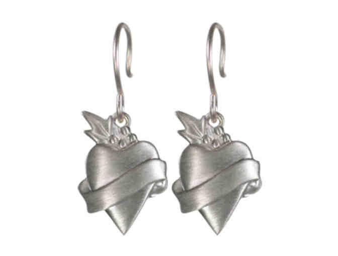 Sterling Silver Small Banner Heart Earrings