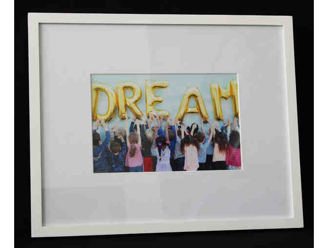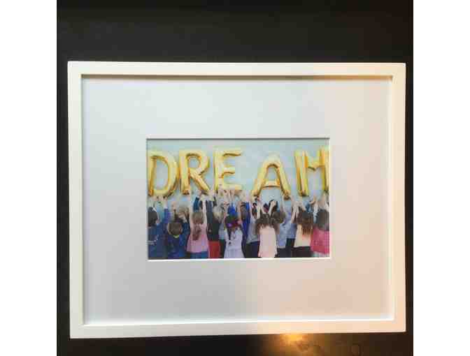 DREAM BIG photograph by Room 2. Who doesn't need a daily reminder to Dream Big?! Mrs. Edelson's class put together an amazing piece of artwork with the kids holding large metallic balloons that spell out the word DREAM. The photo shows every child in the class outstretching their arms reaching for the word DREAM as confetti falls down around them. What a great way to remember this amazing first grade year, as well as a perfect reminder for all of us to follow our dreams... 16x20