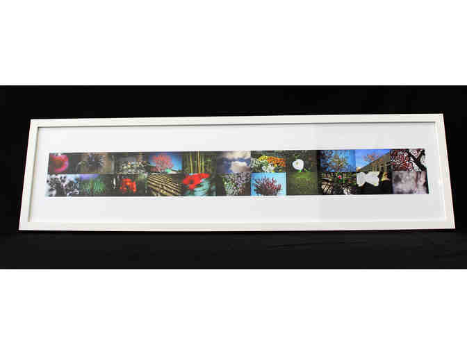 "NATURE'S BEAUTY" framed photographic collage images of nature are captured through the lens of the students of room 39 and presented together in a beautiful, artistic photographic collage. Printed on special art paper and custom framed with an elegant white wood frame, this unique piece of photographic art will look amazing on any wall. SIZE 10x36"