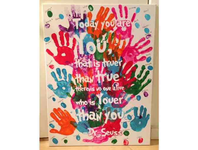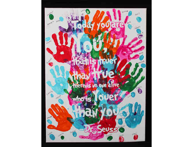 Truer than You - Painted Canvas by Room 10. What better way to inspire our children than with their own artwork? Ms. Geary's class in Room 10 had lots of fun creating this inspiring message. The piece features each childs hand print as well as their thumbprint and name. A great way to add color and inspiration to your home! 18 W x 24 H