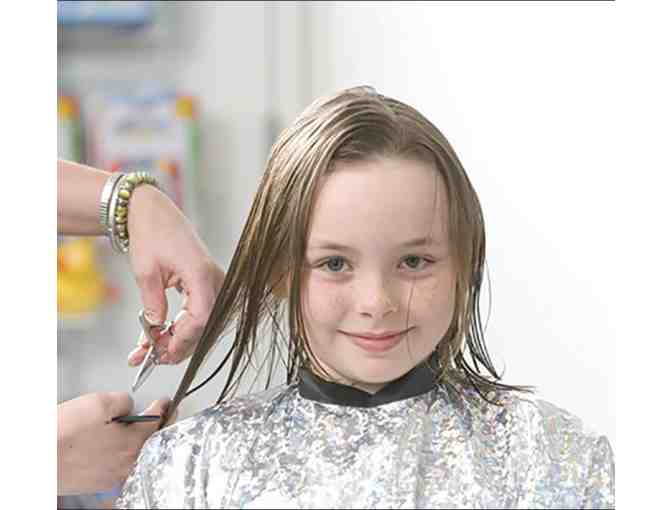 One child's haircut at Locks & Lollipops at 1563 Fourth Street in downtown San Rafael with Leana Filipelli.