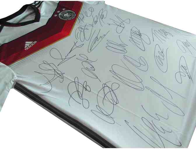 2014 Germany World Cup Team Autographed Soccer Jersey. Signatures include Neuer, GroßÂÂÂÂ?kreutz, Ginter, Höwedes, Hummel, Durm, Lahm, Boateng, Mertesacker, Mustafi, Khedira, Schweinsteiger, Özil, Schürrle, Draxler, Kroos, Götze, Krame, Podolski, Müller, Klose. Comes with certificate of authenticity.