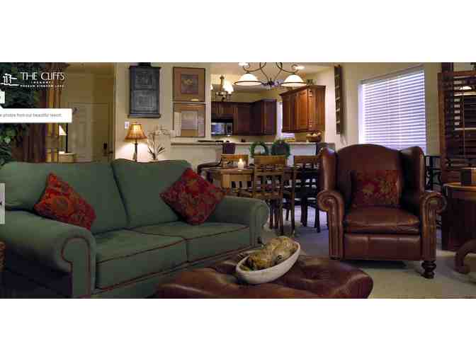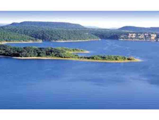 Four nights (or less M-F) in a luxurious fully furnished two bedroom condominium (actual picture listed of condo livingroom decor) with a master bedroom (King with private bath) and second bedroom with two double beds (attached bathroom), Full kitchen, Living/Dining Space, Patio Overlooking beautiful Cliffs, Marina, and Lake. Also includes two rounds of golf at one of the toughest golf courses in Texas (cart fee not included). Plan to stay in and cook or barbecue down by the lake or eat out nearby.